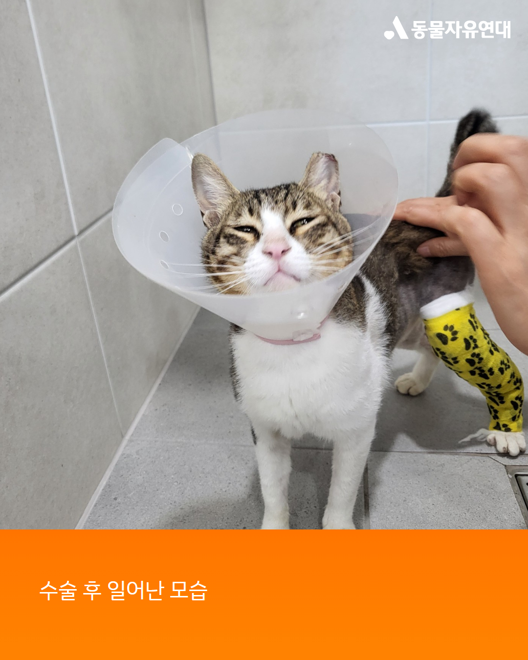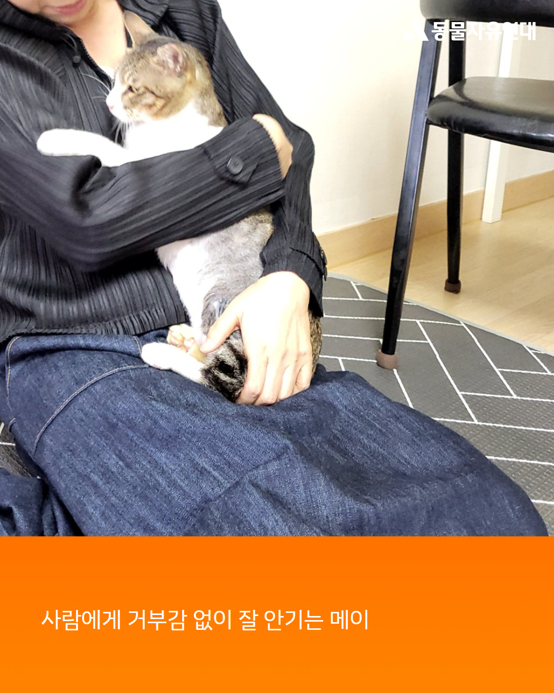 간호사 선생님들께는 애교를 부리며 많은 사랑을 받아 ‘애교쟁이 메이’라는 별명도 생겼습니다. 한 달이라는 긴 치료동안 회복하는 메이를 보면서 구조자는 한 생명을 살려냈다는 보람을 느꼈습니다.
