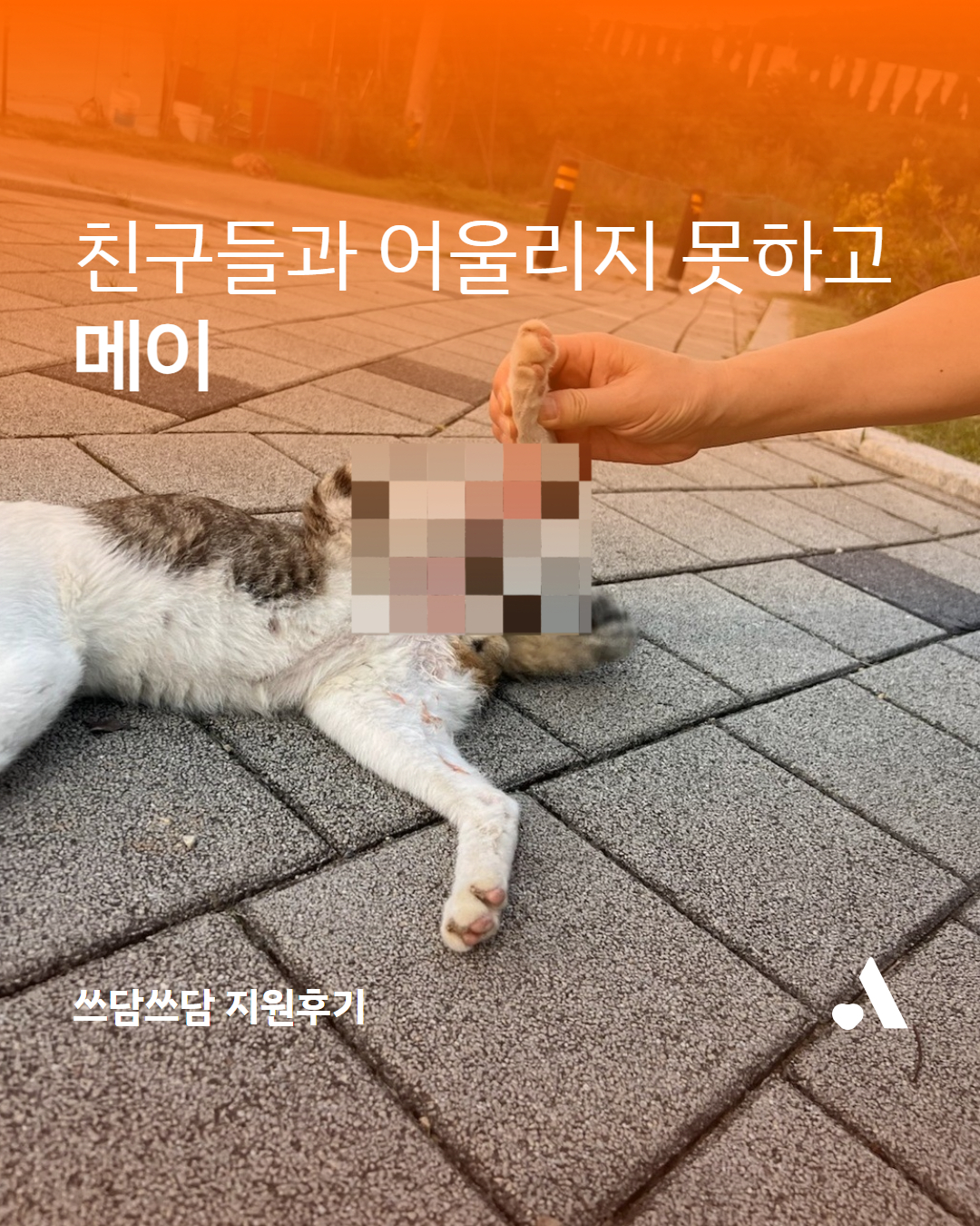 “병원비 부담이 컸지만, 병원장님께서 일부 배려해 주셨습니다. 그래도 치료비는 여전히 한 사람이 감당하기에는 큰 부담이 되어 후원하고 있는 동물자유연대에 문의했더니, 치료 완료 후 신청가능하고, 심사 후 결정된다는 설명을 듣고 메이의 치료를 마친 후 신청했습니다. 메이가 치료 받는 동안 메이의 입양홍보를 했는데 평소 메이를 아는 이웃이 메이를 가족으로 받아들였습니다. 구조자 한 사람이 모든 치료비를 감당하기에는 현실적 어려움이 큽니다. 쓰담쓰담 지원사업이 메이와 같은 아이들에게 큰 희망이 될 것이라 믿습니다. 더 많은 길고양이들에게 살아갈 기회와 희망을 줄 수 있는 계기가 되기를 바랍니다.”