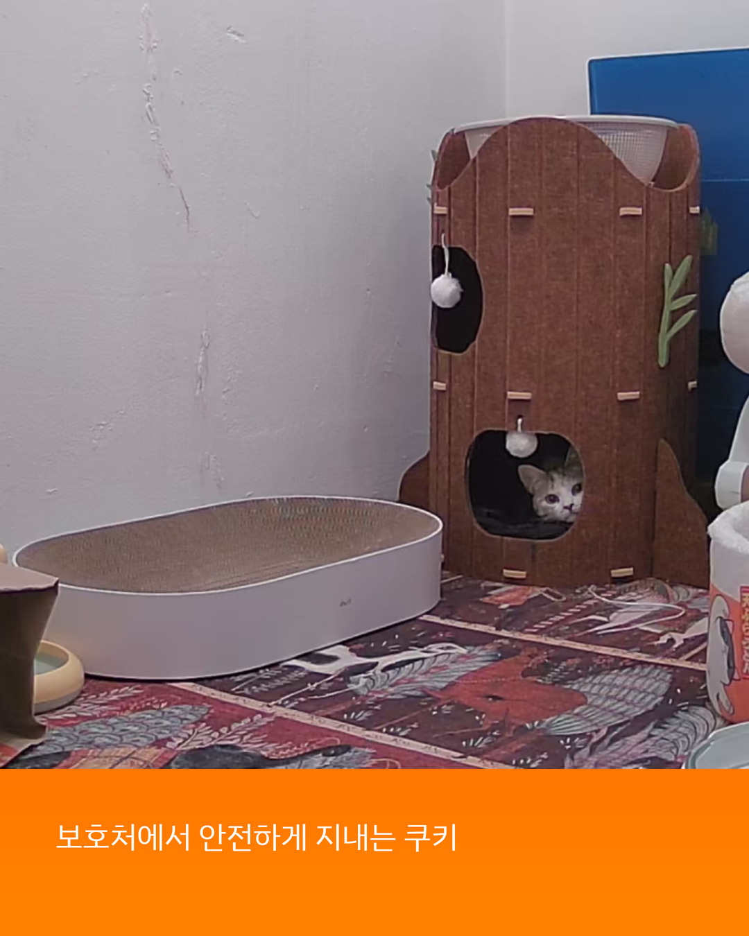 현재 쿠키는 회복에 집중하고 있습니다. 아직 사람 손길에는 예민하지만, 밥도 잘 먹고 건강하게 일상을 보냅니다.