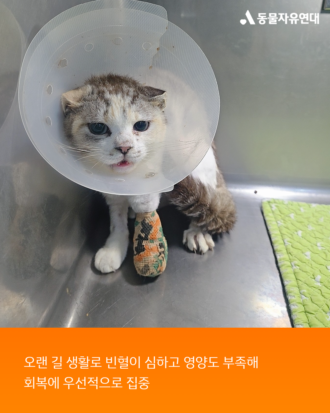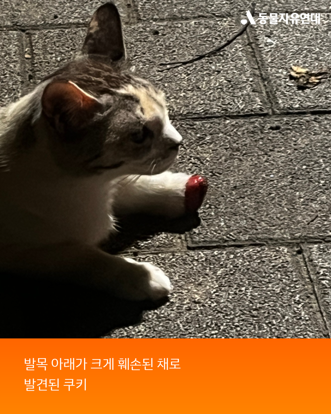 발목 아래가 크게 훼손된 상태였고, 이후 다시 마주했을 때는 앞발이 완전히 절단된 모습이었습니다.