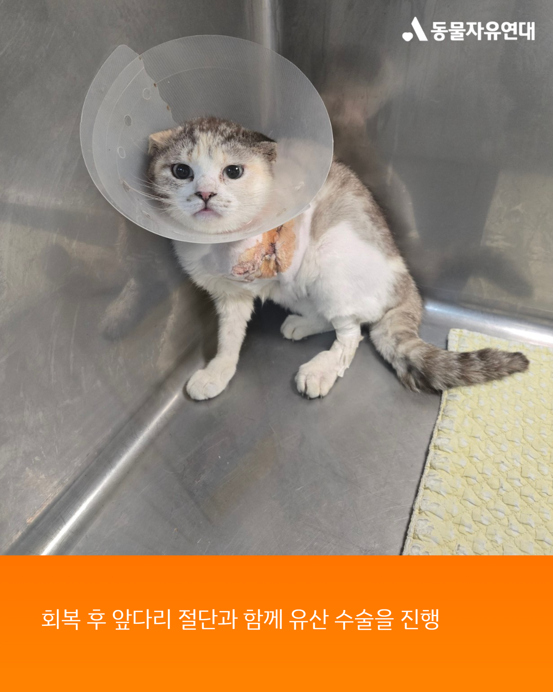 충분한 회복 기간을 거친 뒤 앞다리 절단 수술이 진행되었고, 수술은 무사히 마무리되었습니다.