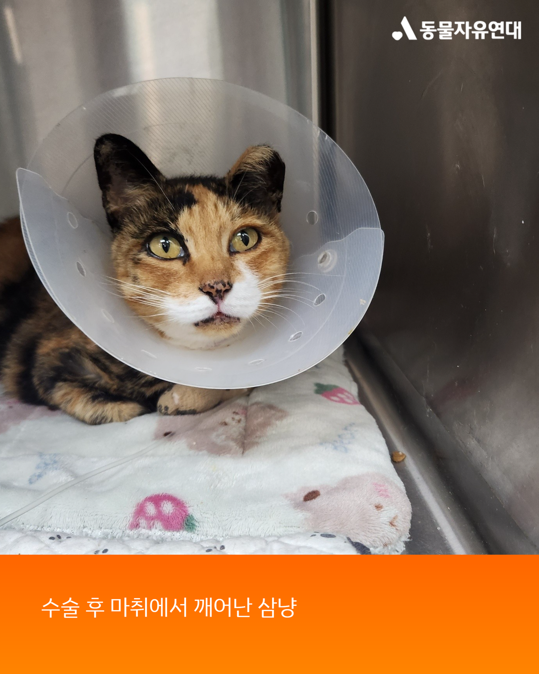 수술 부위 소독과 넥카라 관리가 이어졌고, 안정적으로 지낼 수 있도록 숨숨집과 캣타워 등 환경도 차근차근 마련되었습니다.