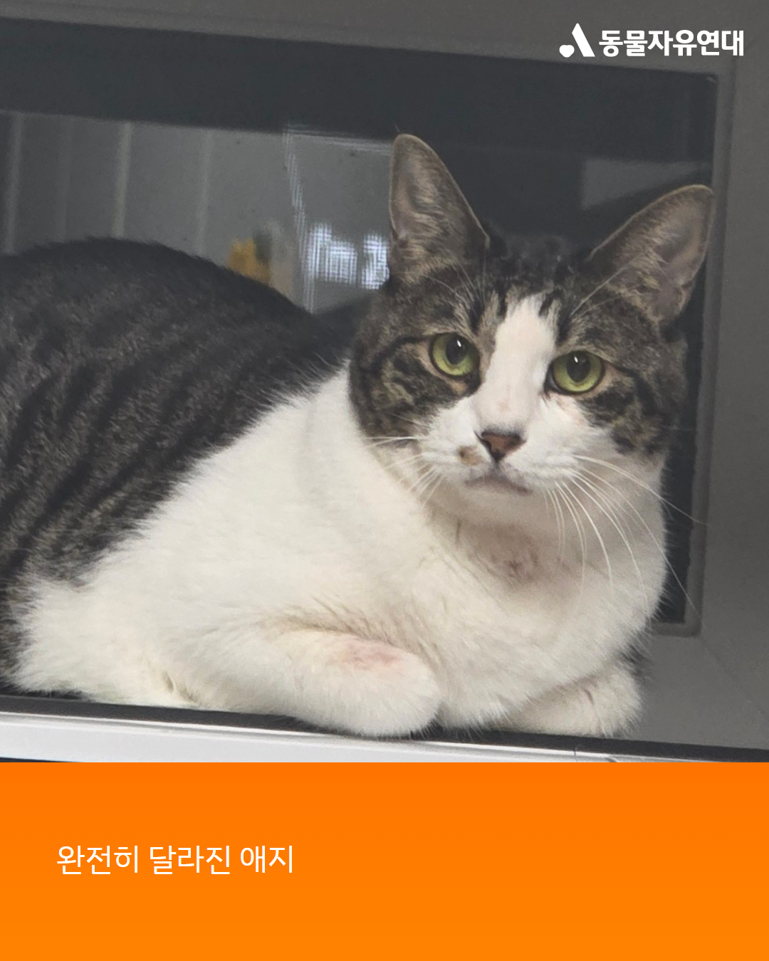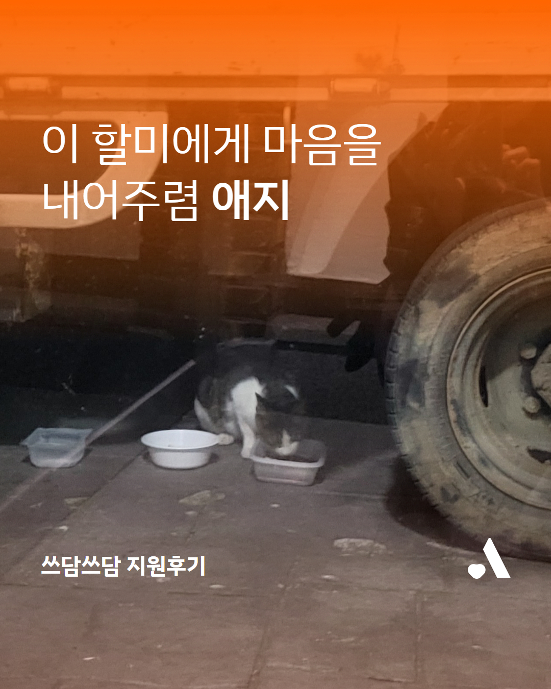 “애지는 시간이 지나면서 곁으로 오기도 하고 애옹하며 울기도 합니다. 저와의 거리도 조금씩 가까워지고 있습니다. 사료를 잘 씹지는 못하지만 잘 먹고 있고, 츄르에 보조제를 갈아 넣어서 주면 잘 먹어줘서 고맙네요. 부디 애지가 회복을 잘해서 이 할머니에게 마음을 내주기만을 간곡히 기다립니다. 녹녹치 않은 가계와 여의치 않은 상황 때문에 쓰담쓰담을 지원하게 되었습니다.”