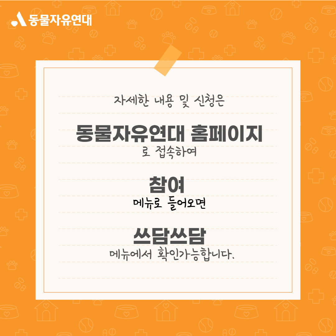 쓰담쓰담 치료비 지원 사업 바로가기 https://www.animals.or.kr/sponsor/sdam