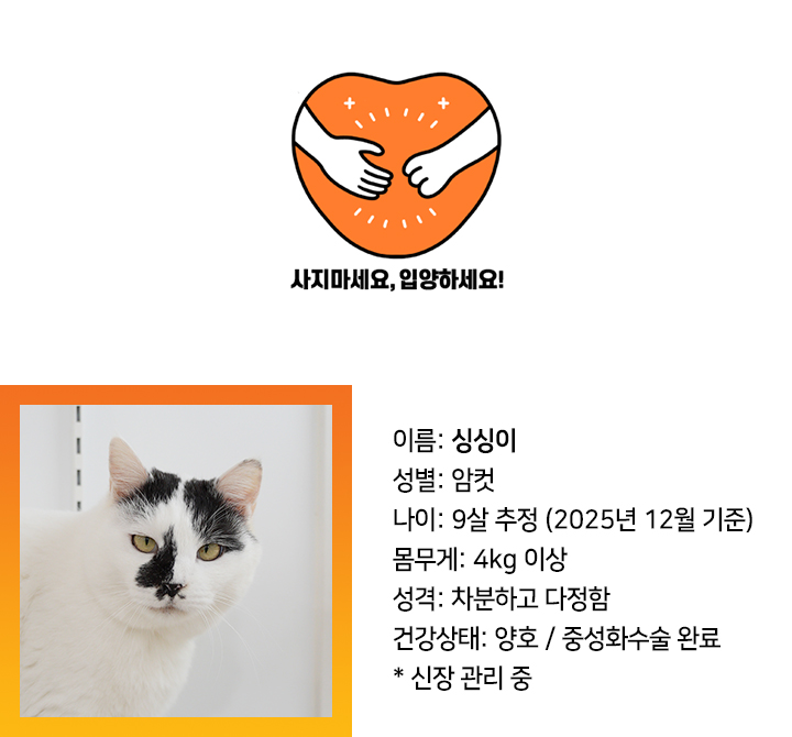 차분하고 다정한 고양이, 싱싱이의 가족이 되어주세요!