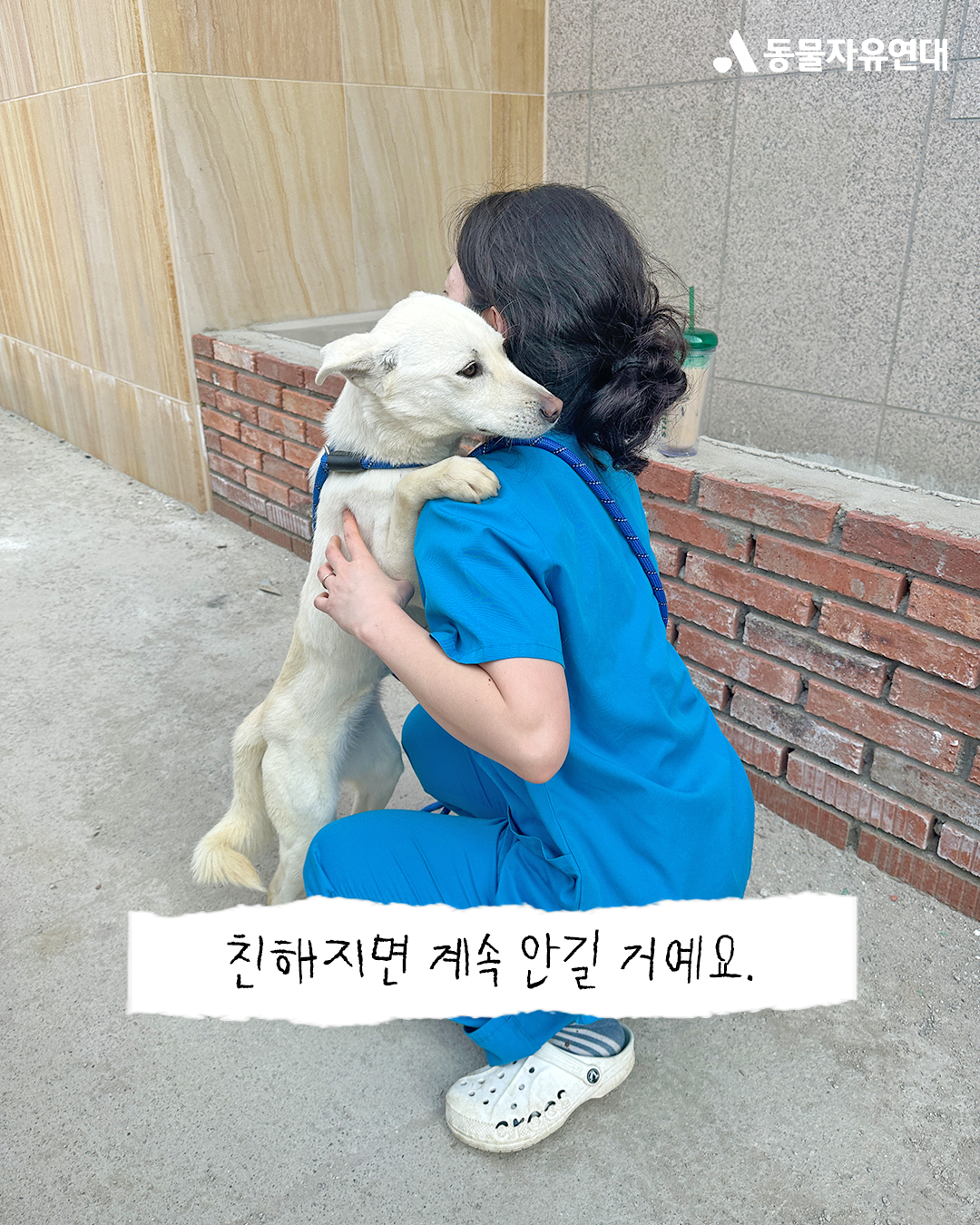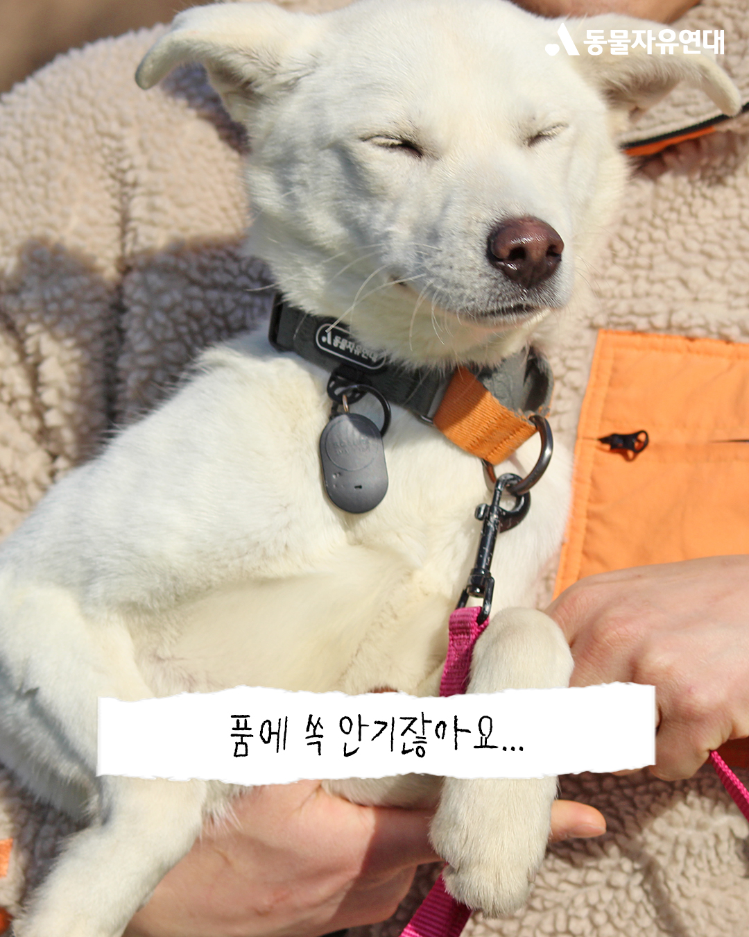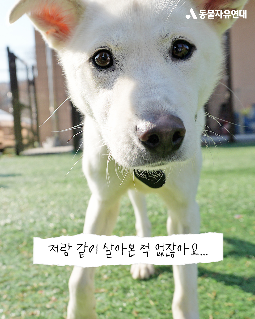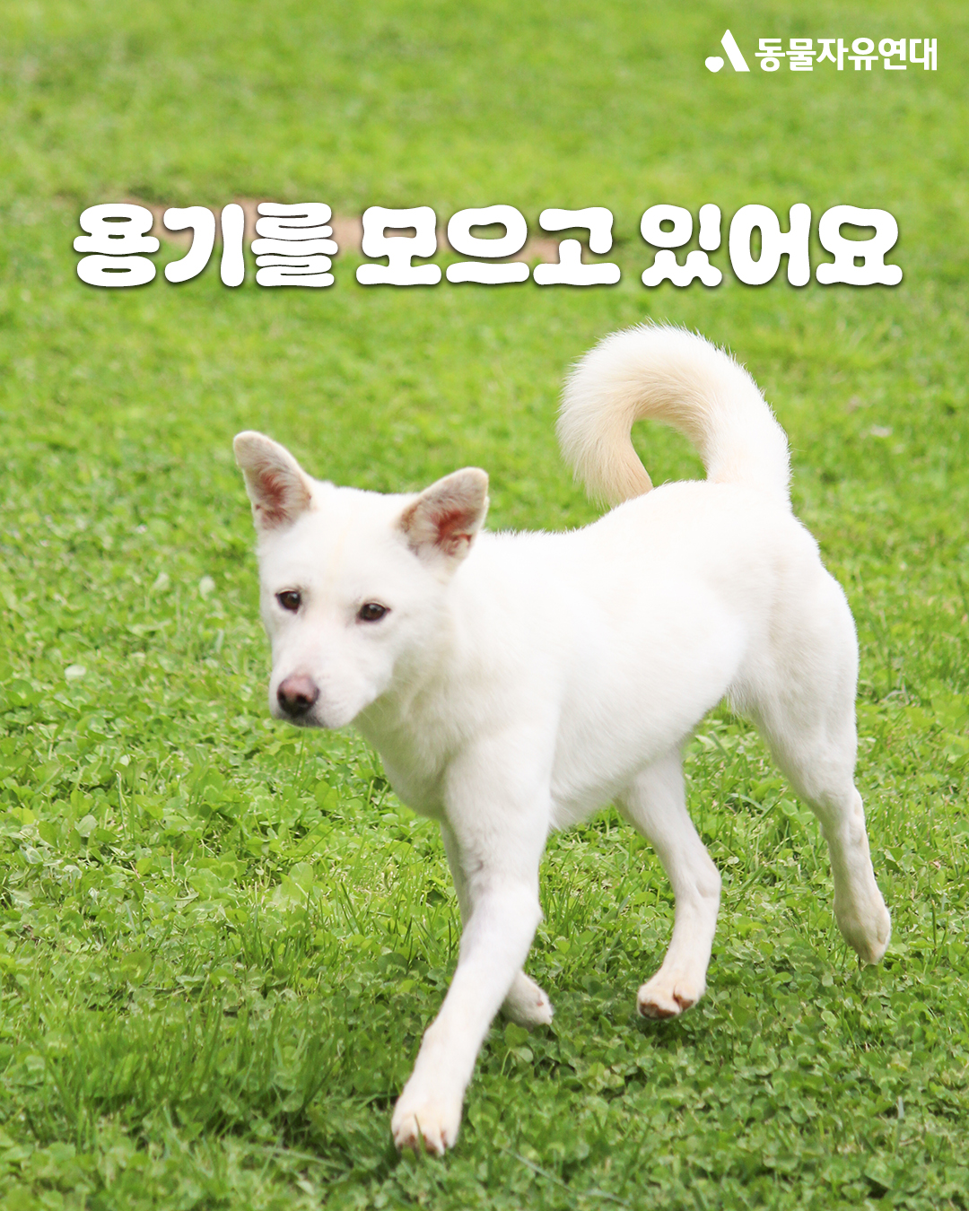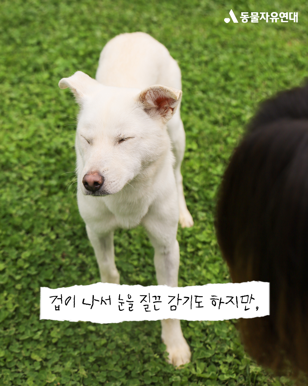 하지만, 손을 내밀면 조심스럽게 다가와 냄새를 맡아주며 천천히 마음을 엽니다. 수줍음이 많지만 호기심도 함께 가지고 있어서 시간이 지나면서 점차 자신만의 속도로 사람과의 거리를 좁혀갑니다.