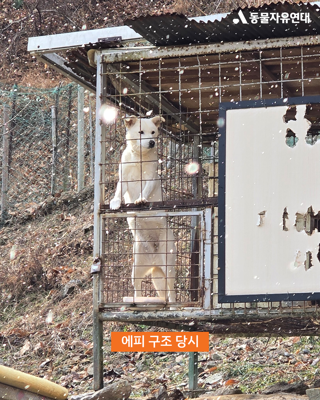 에피는 처음에는 행동 하나하나 신중하고, 머뭇거립니다. 아무도 찾지 않는 야산의 뜬장에 묶여 세상 경험이 부족했던 에피에게 새로운 만남은 설렘과 동시에 어색함을 가져다주는 듯 합니다.