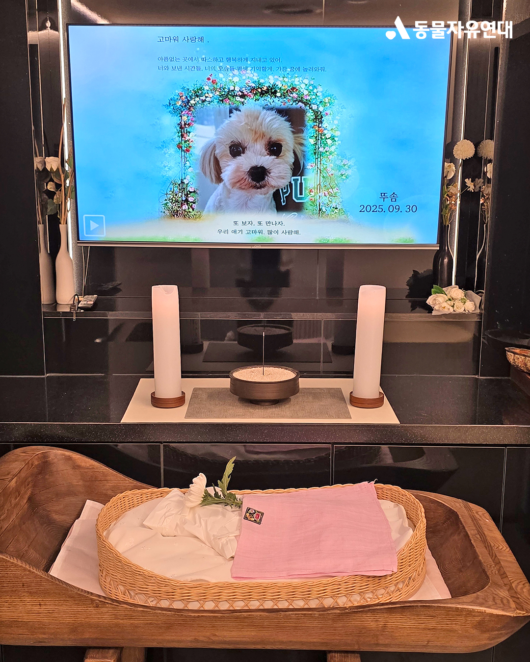 뚜솜이의 삶을 기억합니다. 그리고 다짐합니다. 뚜솜이가 남긴 짧지만 선명한 흔적이 헛되지 않도록, 더 많은 생명들이 제 삶을 온전히 살아갈 수 있도록 계속해 나가겠습니다. 뚜솜이의 마지막 길을 함께 애도해 주시길 부탁드립니다.
