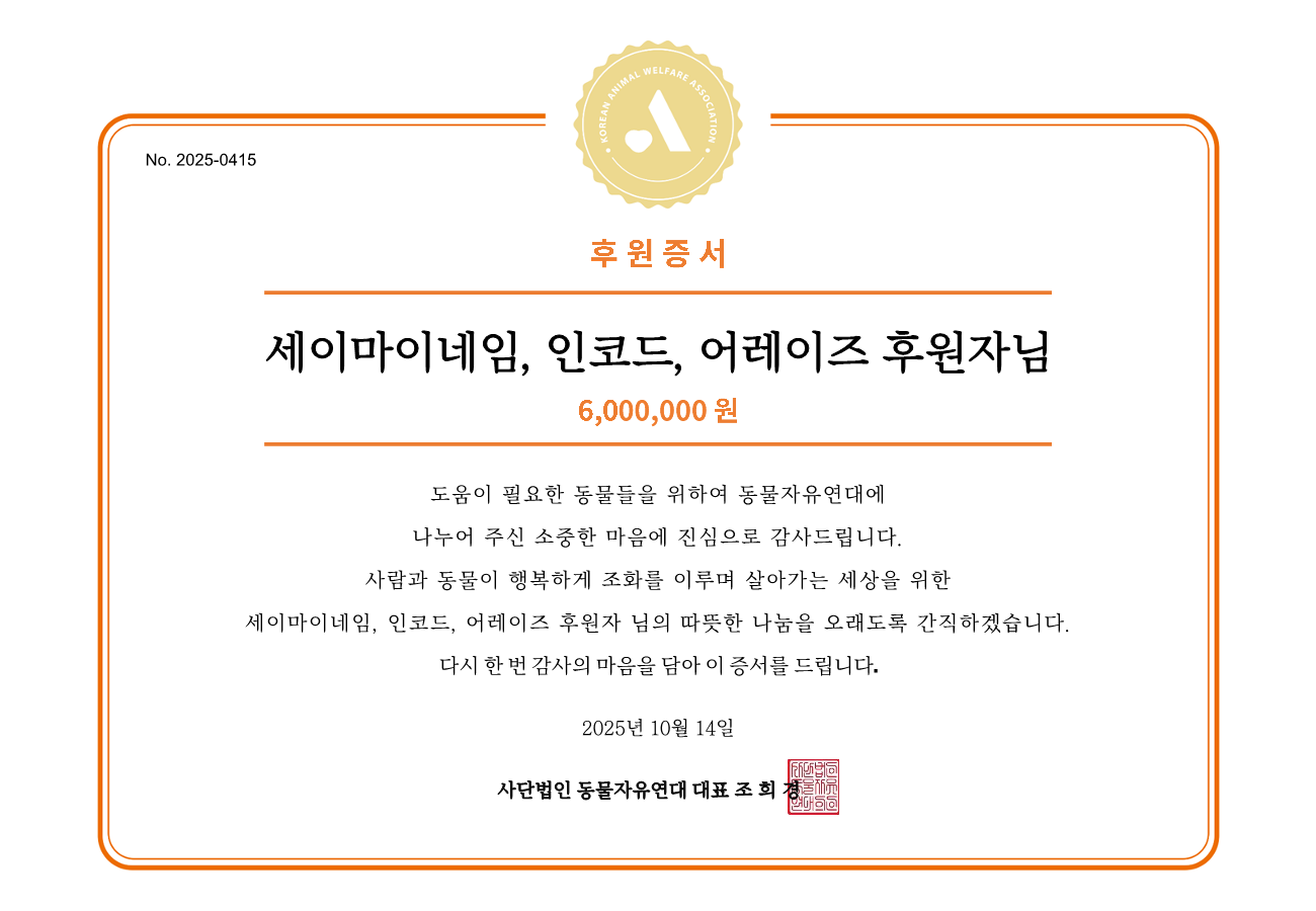 세이마이네임이 전한 이 마음이 소중한 생명들에게 따뜻한 온기로 닿길 바랍니다