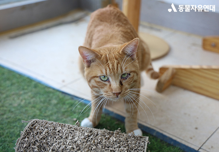 다른 고양이들과 함께 장난감 놀이를 하고, 자리에 서서 가만히 눈을 맞춰주기도 합니다.