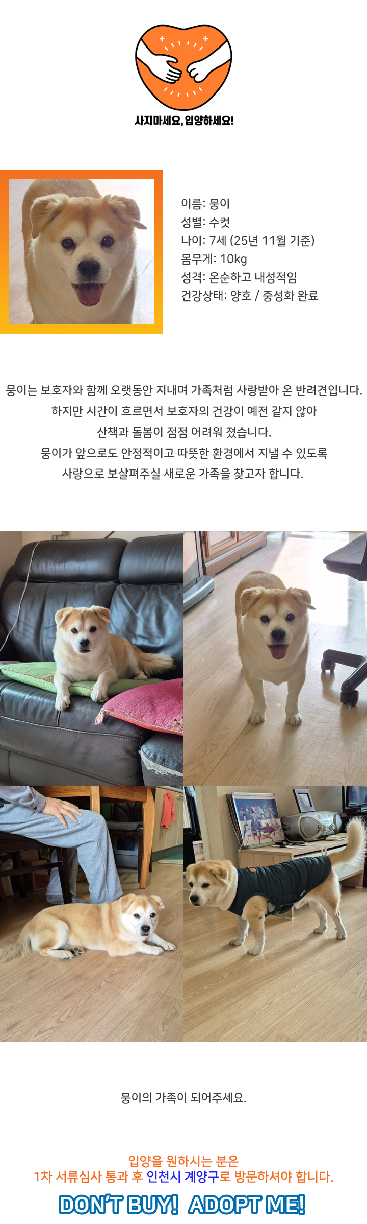 [D25-37관외] 새가족을 기다리는 '뭉이'