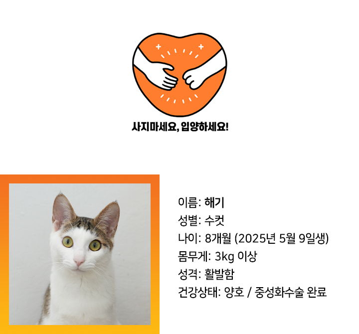 발랄한 사랑둥이 해기의 가족이 되어주세요!