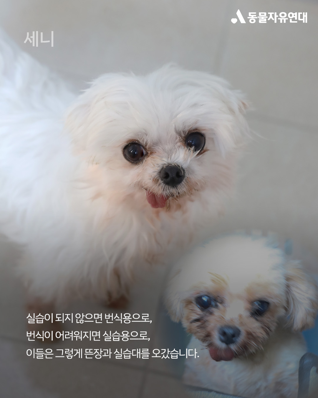 지난 9월 11일, 동물자유연대는 충남 세종시의 한 동물 미용학원에서 실습용으로 쓰이던 53마리의 개들을 구조했습니다.(구조사연 더보기) 그곳에서 동물들은 살아가는 생명이 아닌, 단지 가위질 연습을 위한 도구로 취급되고 있었습니다. 이들은 미용 실습 뿐 아니라 번식에도 이용되었습니다.(번식장과 미용학원에서의 이중학대)
