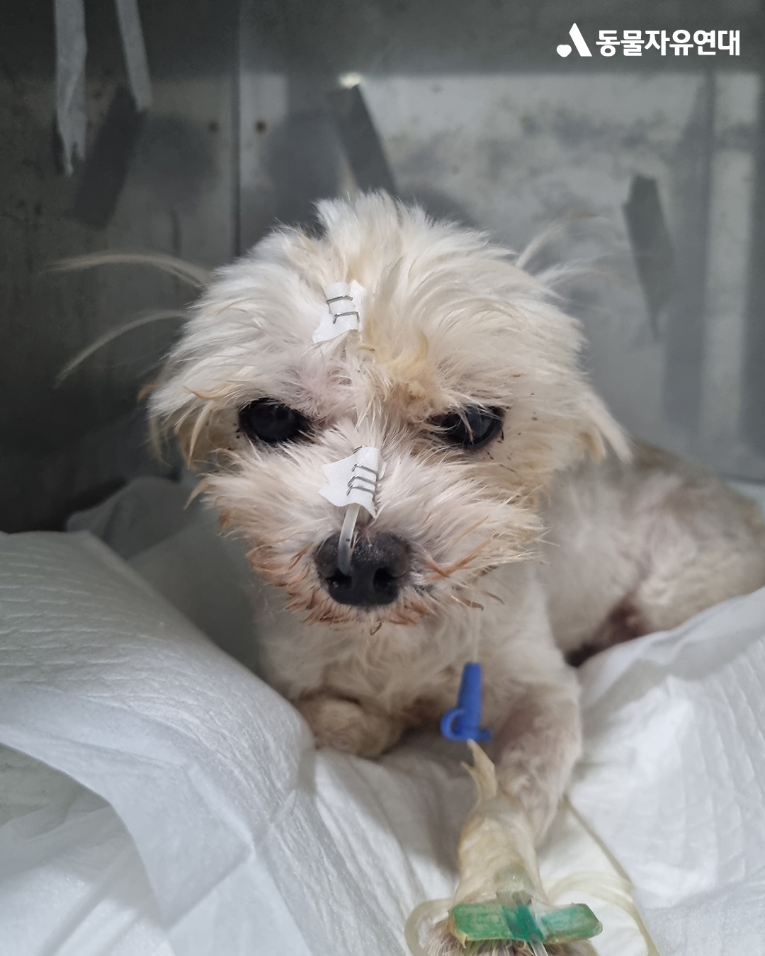 하지만 안타깝게도 구조견들 중 뚜솜이가 구조 후 진행된 건강검진에서 파보바이러스 양성 판정을 받았고, 현재 긴급히 외부 협력병원에 입원해 치료를 받고 있습니다.