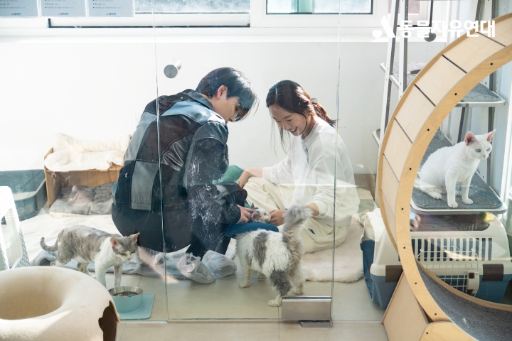 가장 기다리던 순간은 역시 결연동물과의 만남이었습니다. 온캣 고양이들은 저마다의 방식으로 대부모님들을 맞이했습니다. 먼저 다가와 머리를 부비며 반가움을 표현하기도 했고, 조금 떨어진 곳에서 조용히 시선을 맞추며 교감하기도 했습니다. 활동가는 고양이들의 최근 근황과 성격 변화를 전하며 안전하게 교감할 수 있도록 도왔습니다. "자주 못 와서 미안했는데 이렇게 건강하게 지내는 모습을 볼 수 있어서 정말 다행이에요"라는 대부모님의 말씀에는 진심이 묻어났습니다.