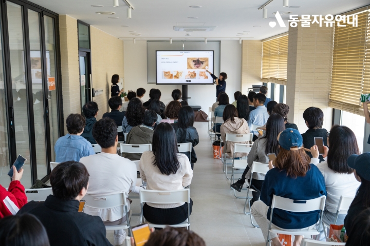 전상준 처장님의 따뜻한 인사말씀으로 본격적인 행사가 시작되었습니다. 온캣 고양이들의 간식 먹방 영상에서는 웃음소리가 터져 나왔고, 귀여운 미니 상장 수여식에서는 박수가 쏟아졌습니다. 온라인으로 진행된 결연동물 퀴즈는 열띤 참여가 이어지며 대부모님들의 사랑과 관심을 다시 한번 확인할 수 있었습니다. 행사 중에 적어주신 Q&A 질문들에서도 결연동물에 대한 깊은 애정이 느껴졌습니다.