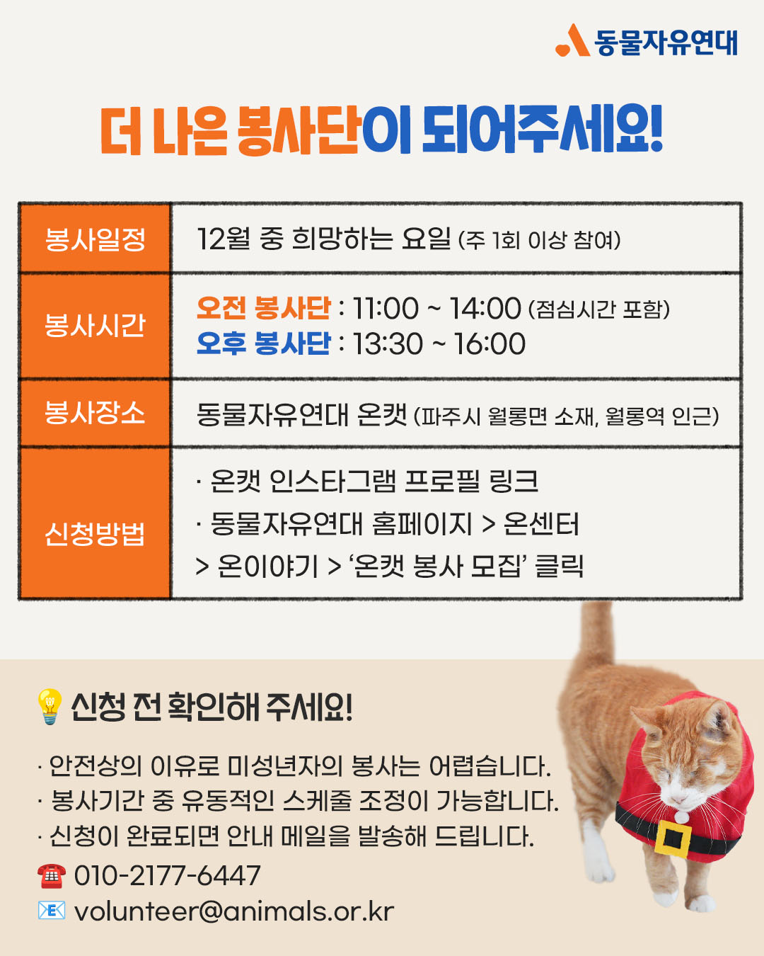 [봉사] 온캣에서 함께해요! 12월 정기봉사 모집🧡