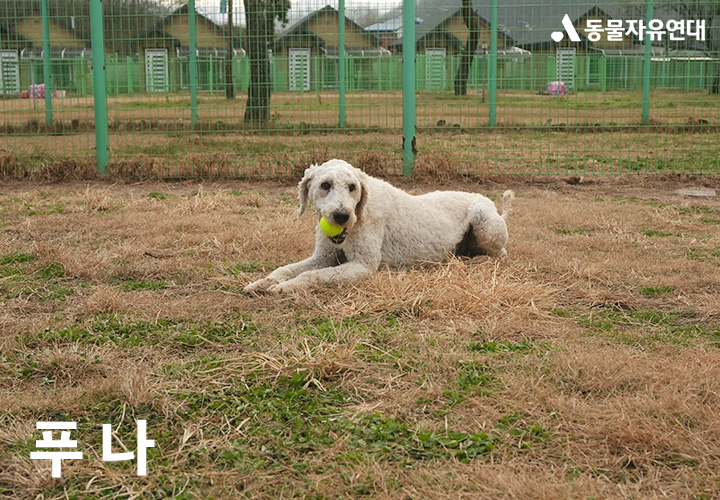 푸나는 위탁보호소장님을 마치 아빠처럼 따르며 애정을 가득 표현하는 사랑둥이에요. 운동장에 나와서도 소장님 품에 폭 안겨 온몸으로 애교를 한가득 보여줘요.💓