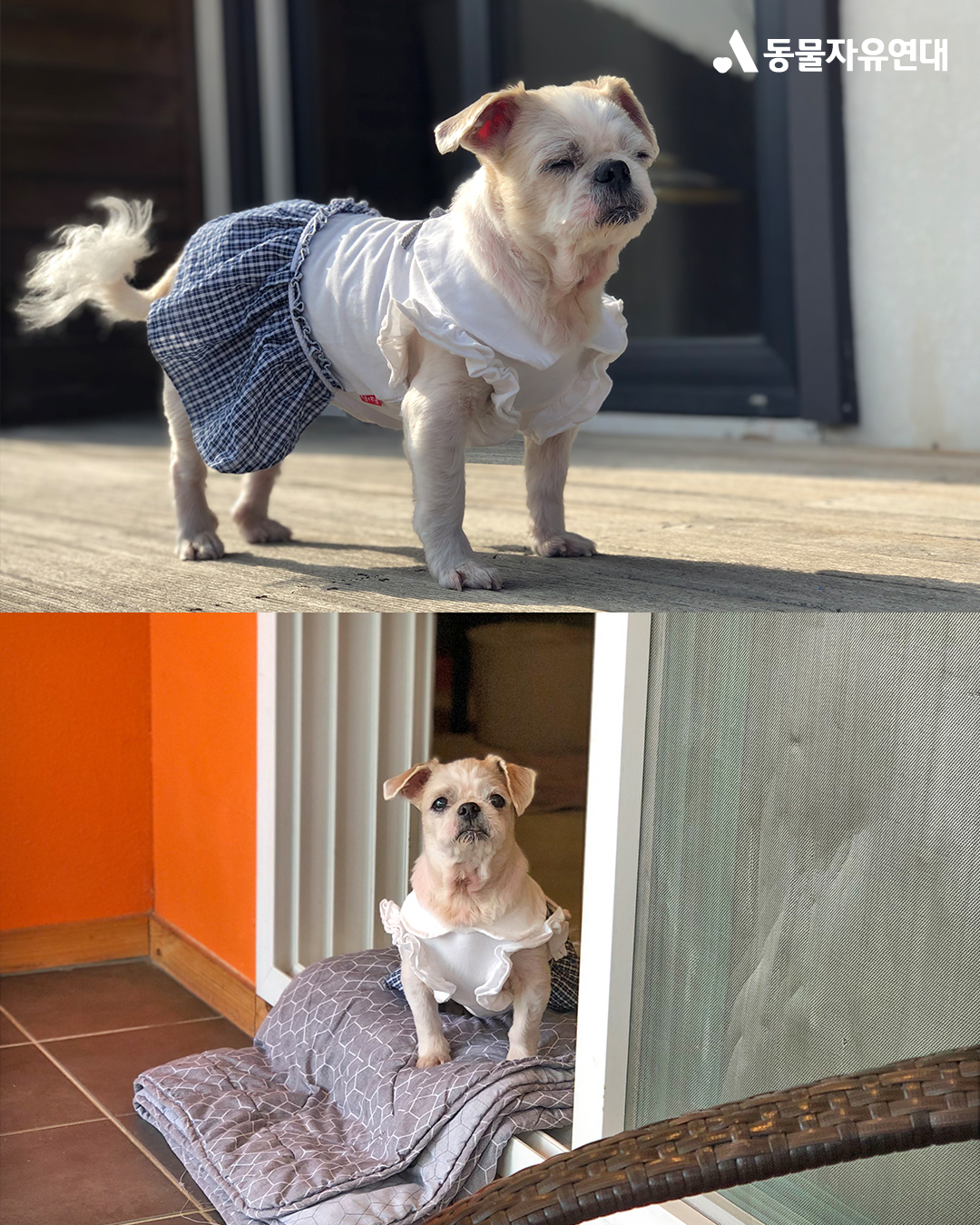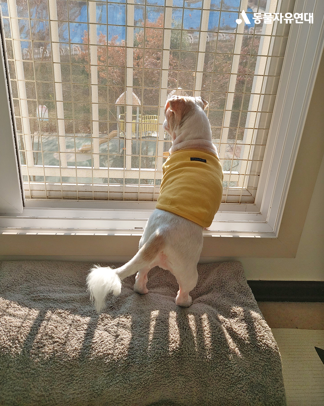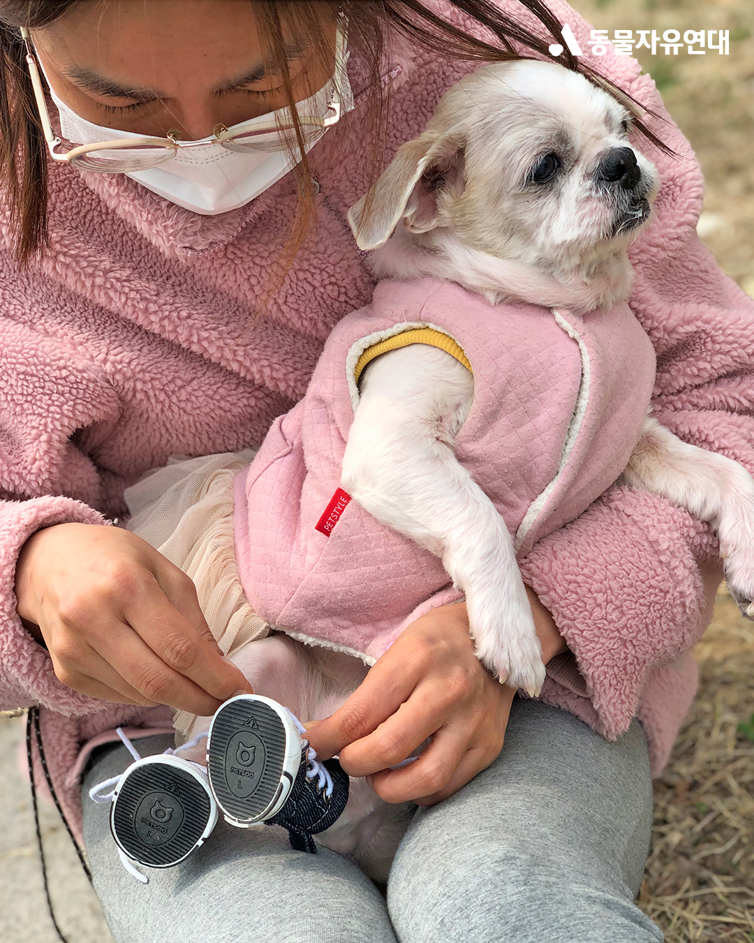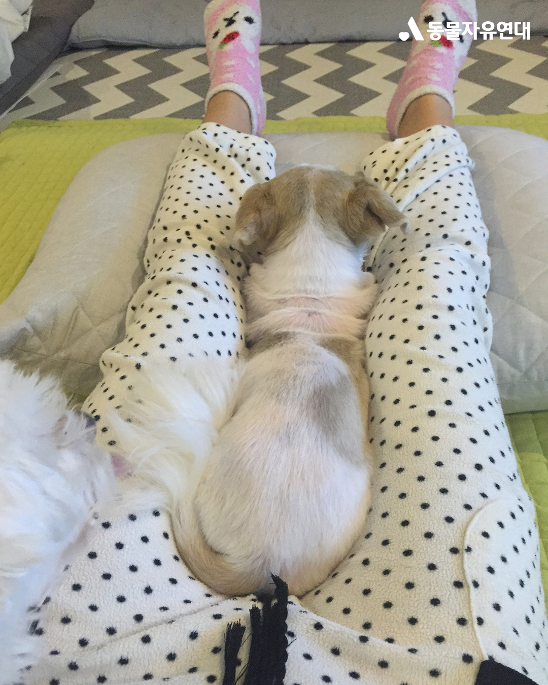 늘 고집 세고 한 성질 했던 탱이에게도 나이가 들면서 여러 병과 노화의 속도가 찾아왔습니다. 담낭점액종으로 담낭을 제거하는 수술을 견디기도 했고, 이후에는 원인을 알 수 없는 신경 증세로 신체가 굳어 사지마비 상태가 찾아왔습니다. 지난 2년여의 시간 동안 탱이는 스스로 움직일 수 없었기에 자세를 자주 바꿔주어야 했고, 배뇨와 배변 역시 사람의 손길이 필요했습니다.