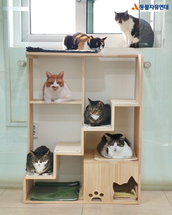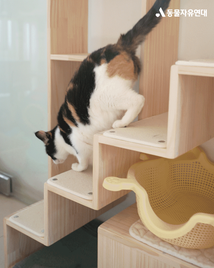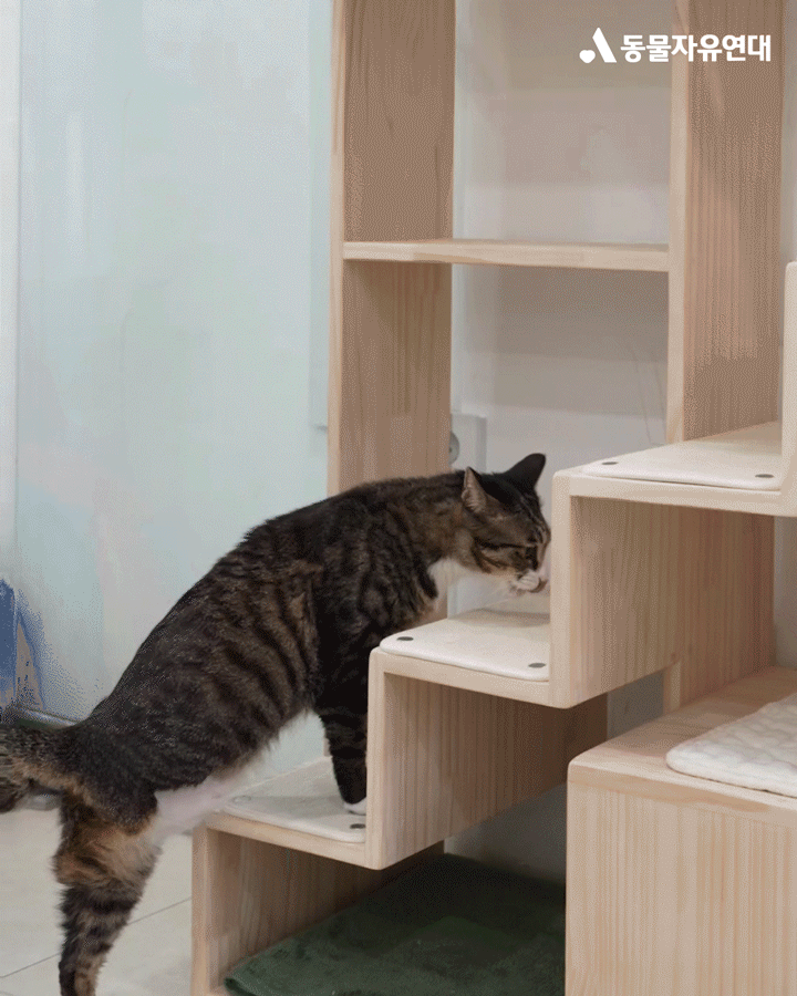 보내주신 후원금 덕분에 사고로 세 발만 사용할 수 있는 장애묘들이 수월하게 캣타워에 올라갈 수 있게 되었습니다.