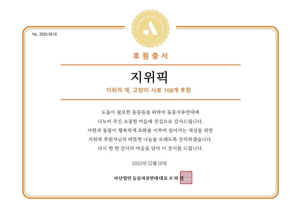 지위픽의 엠버서더로 활동중인 배우 이기우님의 소개로 동물자유연대 후원으로 이어졌습니다.👏👏👏