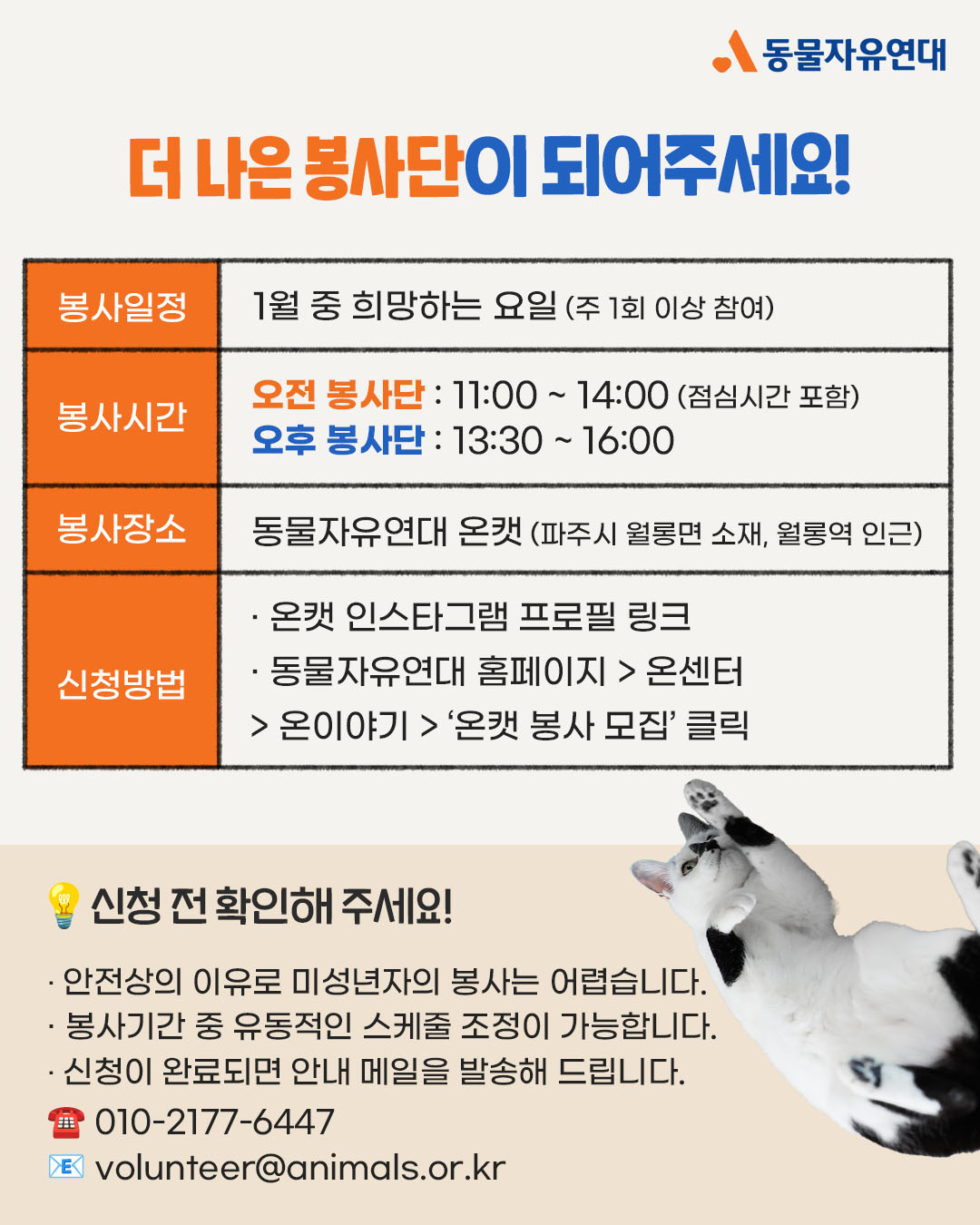 [봉사] 온캣에서 함께해요! 1월 정기봉사 모집🧡