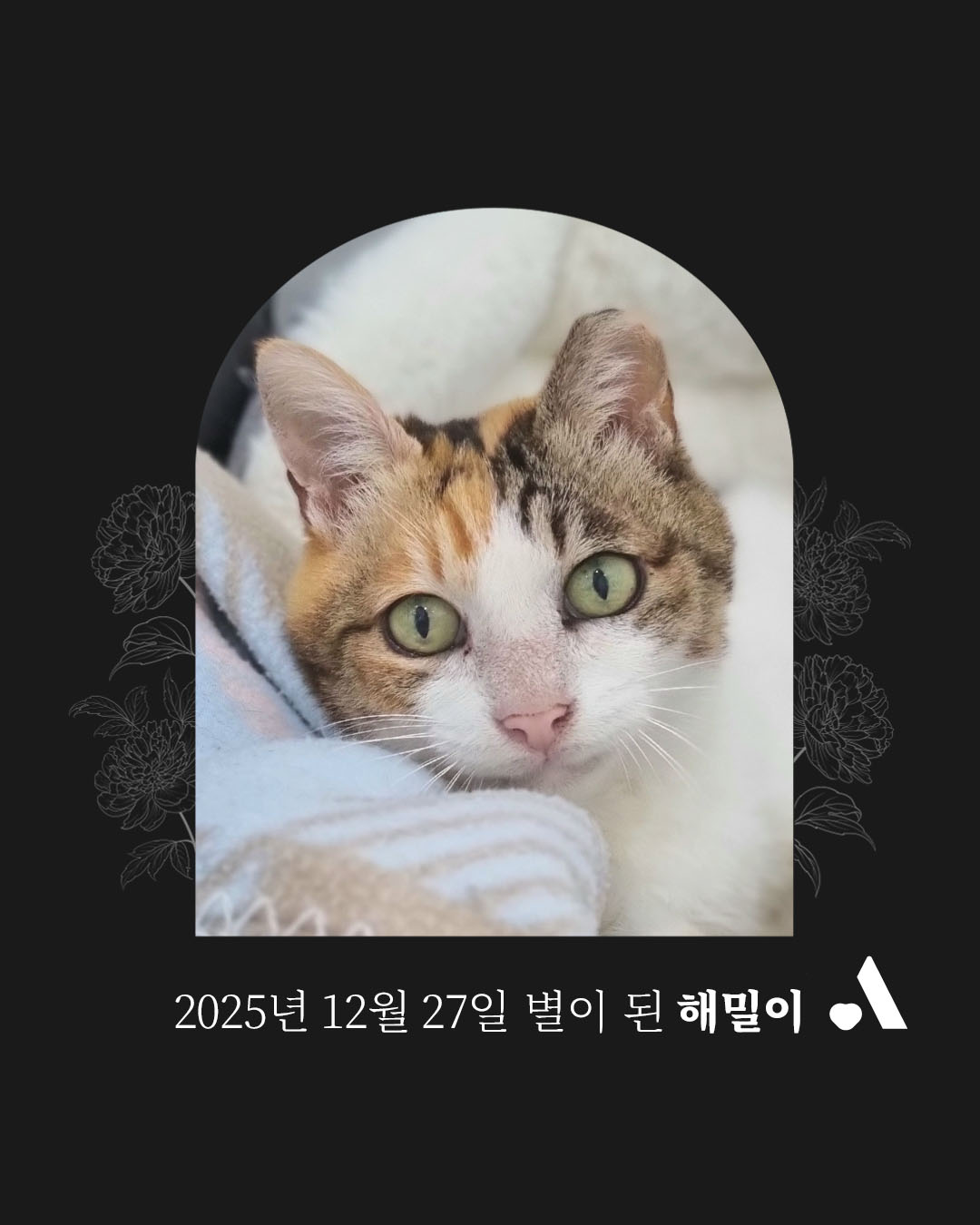 해밀이가 다른 고양이들과 활동가들에게 건네 준 사랑은 따뜻하고 다정했기에, 추운 겨울에도 그 온기가 아직까지 느껴집니다. 더는 고통 없는 여정에 평온함이 깃들기를 바라며 활동가의 편지를 전합니다.