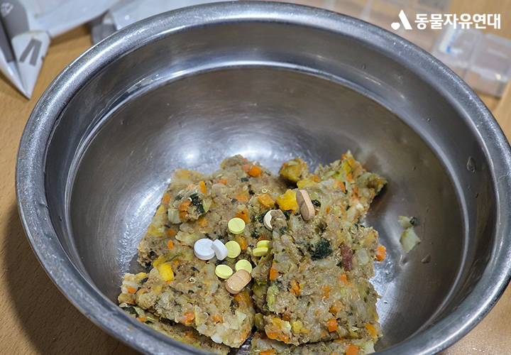 그래도 다행인 것은, 강단이는 아직 식욕이 좋은 편입니다. 밥과 간식을 건네면 아주 잘 먹고, 또 하나 달라진 점은 쉽게 허락하지 않던 사람의 손길을 이제는 거부하지 않으며 말랑한 발바닥을 마음껏 쪼물딱거려도 가만히 손길을 느낍니다.