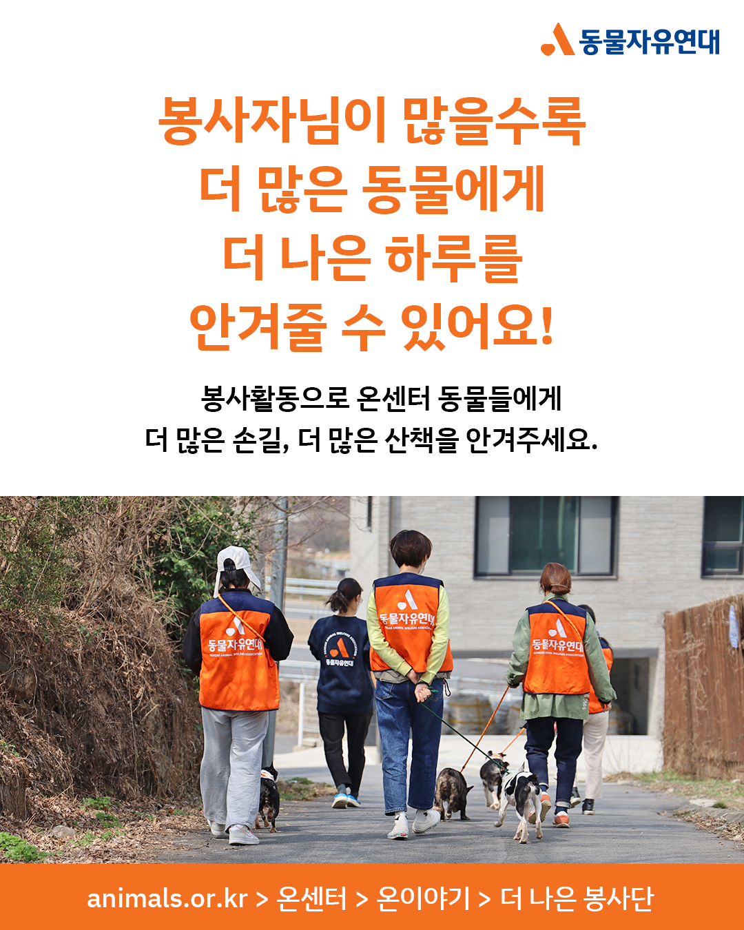 또는 동물자유연대 홈페이지(animals.or.kr) > 온센터 > 온이야기