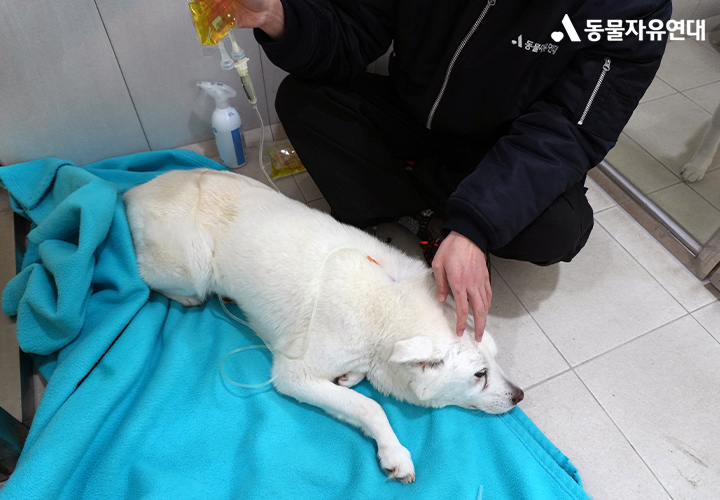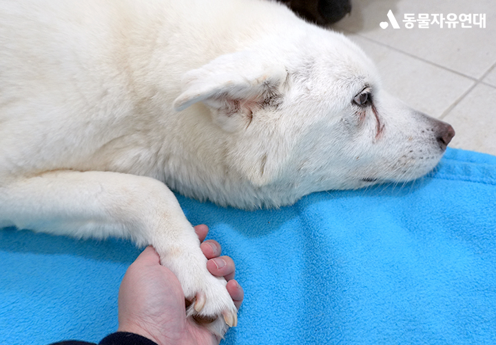 백설이 많이 야위어서 마음이 아프네요. 백설이가 따뜻한 보살핌 속에서 너무 아프지 않고 남은 시간을 잘 보내길 바라요. 백설아 힘내! 활동가님들도 힘내세요.