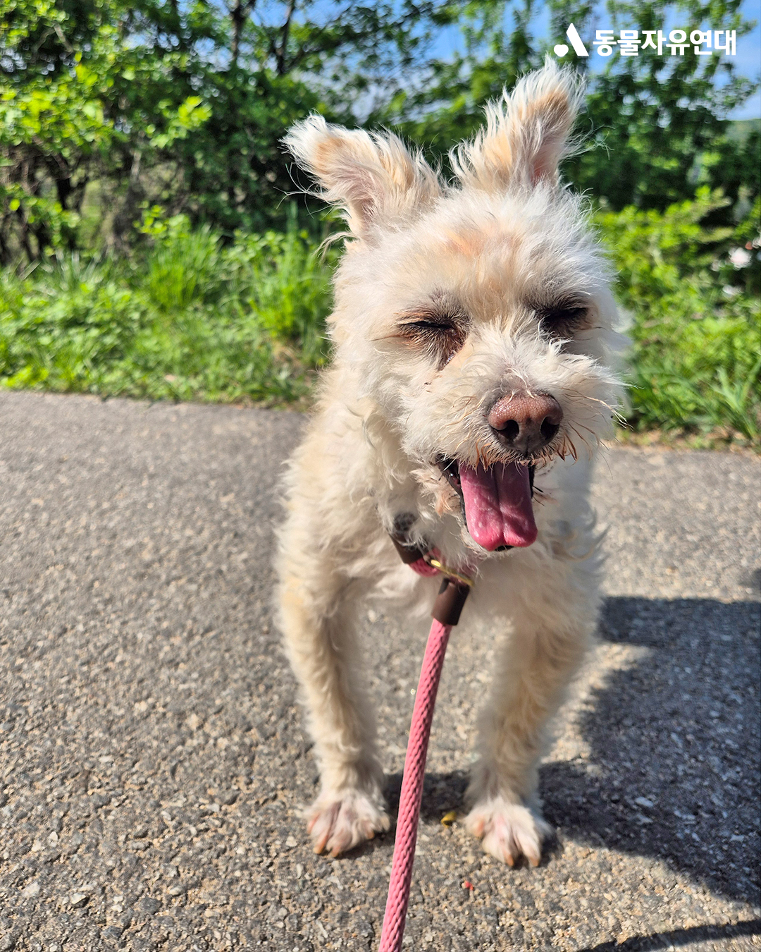 2015년, 불법 번식장에서 구조되었을 때 경계심이 가장 커서 가장 마지막으로 구조되었다는 이야기를 들었어. 처음엔 사람의 손길을 무서워하던 허브. 귀청소 한 번 해주려 하면 겸자를 깨물던 모습도 아직 선명해. 그래도 미용을 해주면 노견이라는 말이 무색할 만큼 얼굴은 더 귀엽고 사랑스러웠던 우리 예쁜 허브.