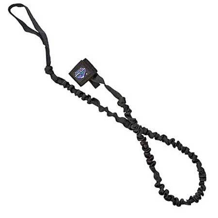 국내에서 쉽게 볼 수 있는 형태는 아니지만, 고무 튜브나 신축성있는 소재로된 부분을 일부 포함한 목줄입니다. 이러한 목줄은 개(움직임이 빠르거나 힘이 센 개)가 줄을 당기면서 앞으로 걷거나 뛰어갈 때 목에 가해지는 자극을 줄여 부상을 방지하기 위한 목적으로 디자인되었습니다. 그러나 이러한 목줄을 사용하는 것보다는 개가 천천히 걷게하는 훈련을 시키거나, 줄을 좀 늘여서 사용하는 방법을 생각해보는 것이 좋습니다.