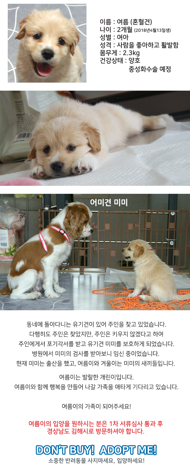 순심이 입양신청을 했는데 여름이와 겨울이는 연고지가 부산 김해이네요 저도 집이 부산이라 혹시 순심이 입양이 어려우면 여름이와 겨울이 입양 고려하고 싶어요
