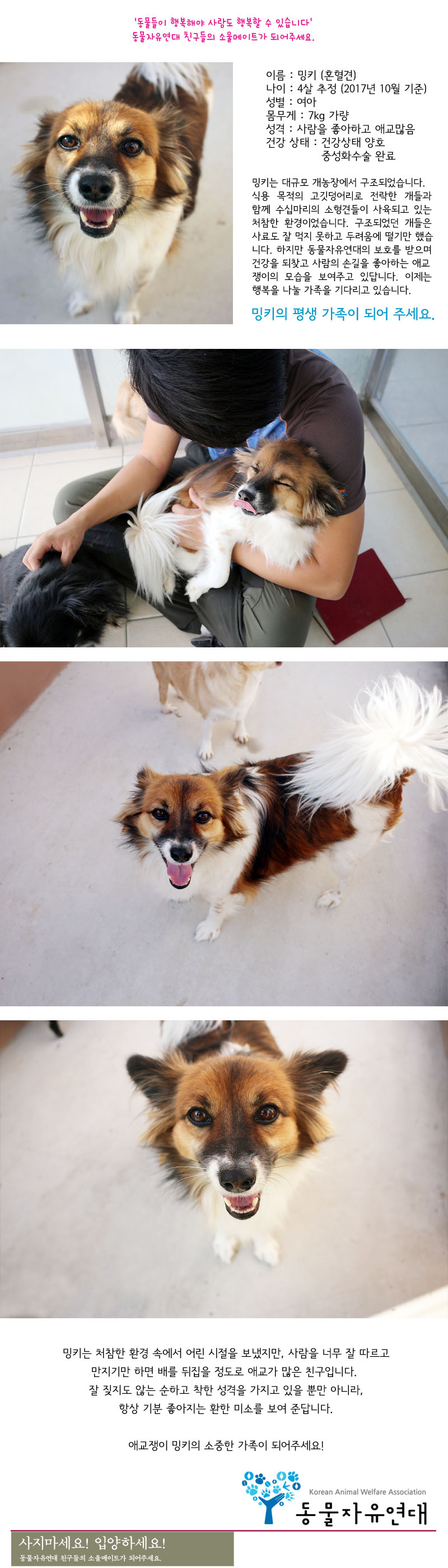 안녕하세요. 동물자유연대입니다. 밍키는 아직 입양전입니다.