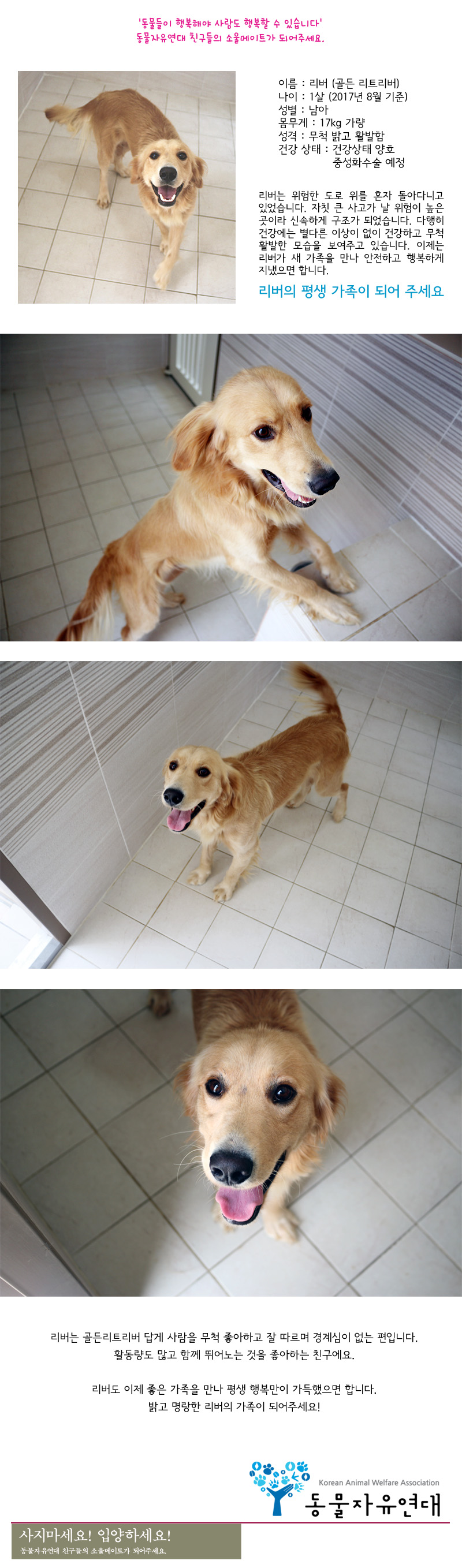 한살인데 17키로밖에 안나가요??? 넘 마른것 아닌가싶은데... 그래도 아가 얼굴이 진짜 넘 이쁘네요!!! 좋은주인 만나길 진짜 간절히 바래요!!