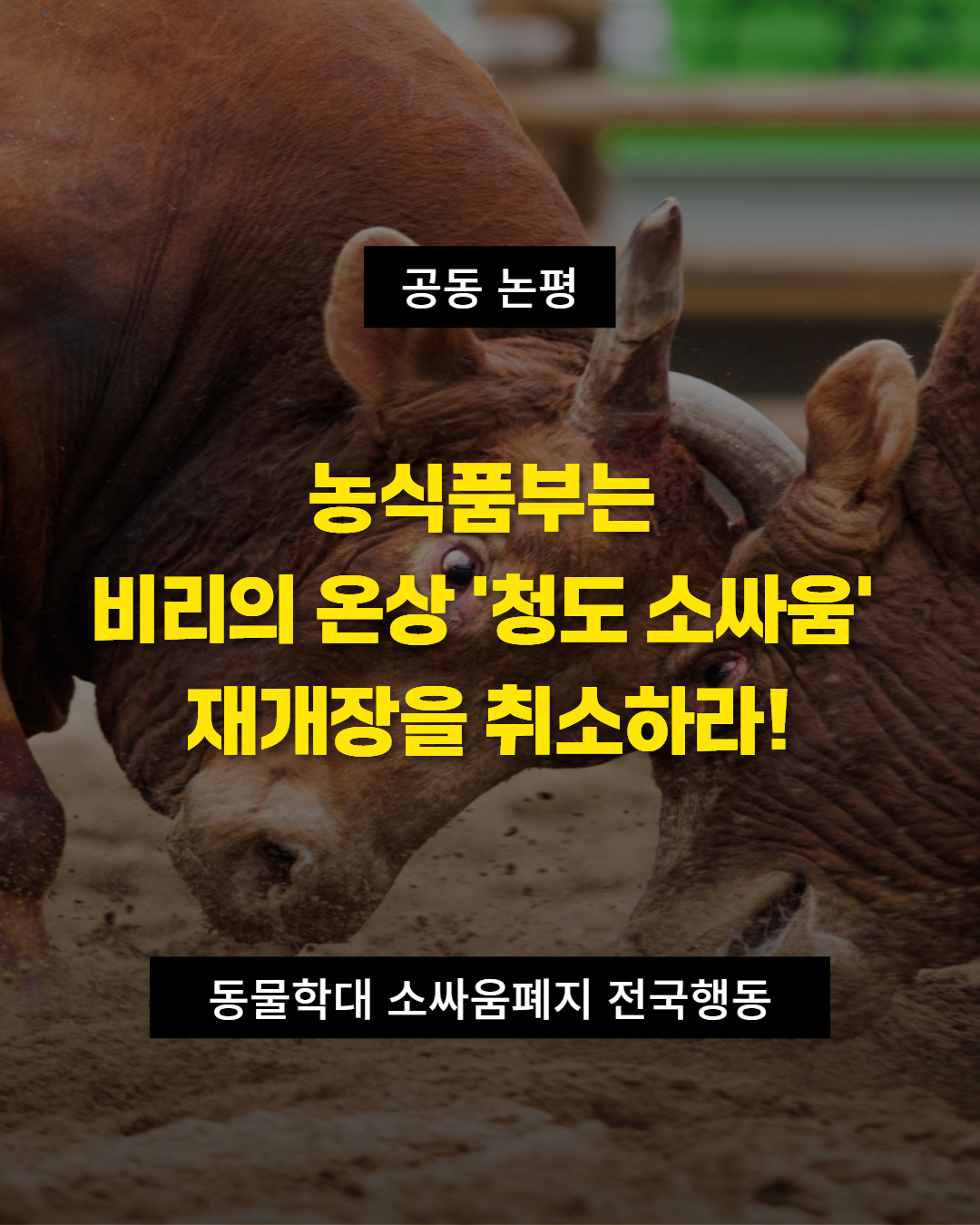 - 비리와 학대의 온상이 된 청도 소싸움 경기의 재개장 허가를 즉각 취소하라!