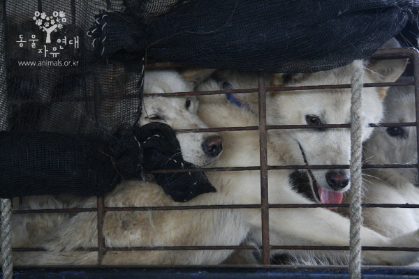 이렇게 개들을 움직이지 못하게 가둬 놓고 운송하는 것은 새삼스러운 일이 아닙니다. 공격성이 강한 편인 개의 경우 열악한 환경에서 극도의 스트레스를 받을 때 서로를 물어 뜯는 일이 발생할 위험이 높아 서로 싸우지 못하도록 여러 마리의 개를 한꺼번에 몰아 넣고 운송합니다. 그리고 만약 개 식용을 합법화한다고 해도 개의 기질은 변하지 않기 때문에 이러한 비인도적이고 가혹한 방식 또한 변하지 않을 것입니다. 현재 동물보호법으로 동물 운송에 대해 규정한 조항이 있긴 하지만 강제성이 없기 때문에 당연히 지켜지지 않고 있습니다.