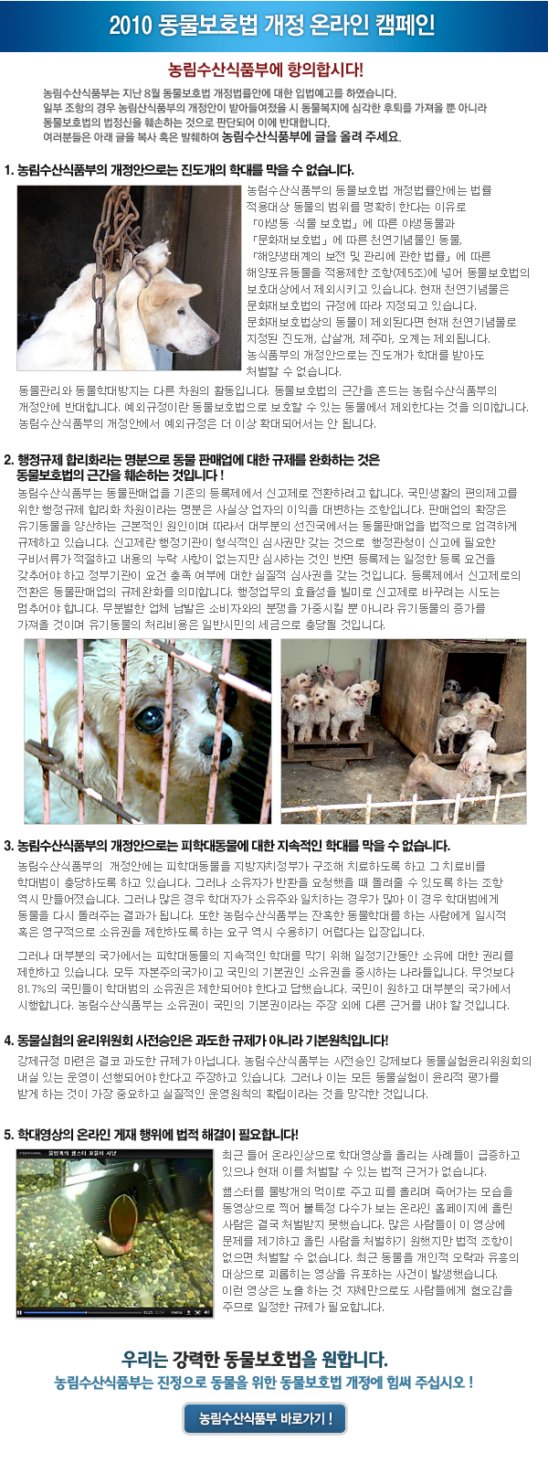 2010 동물보호법 개정 온라인 캠페인 [농식품부에 항의합시다!]