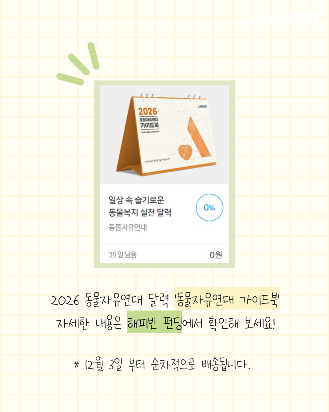 📘 ‘동물자유연대 가이드북’ 해피빈 펀딩 진행 중