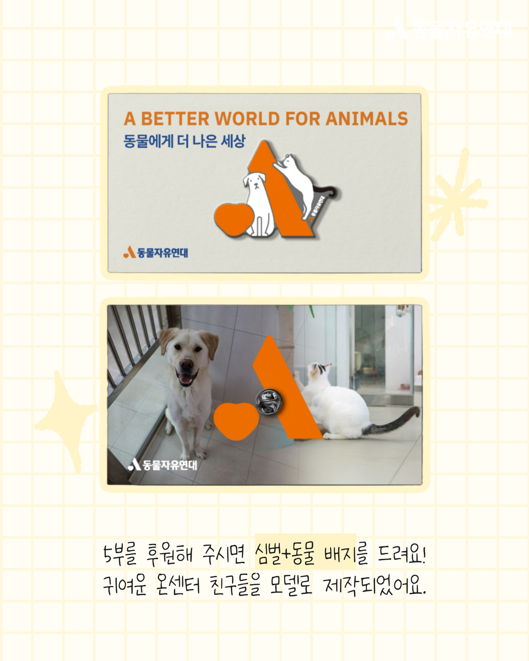 🎁 달력 5세트 리워드 : 동물자유연대 심벌 & 동물 배지