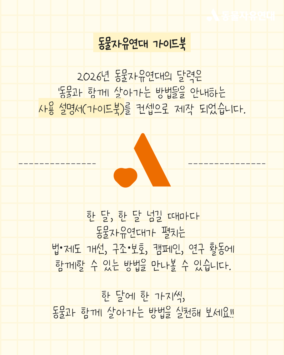 그들을 지키는 방법이 담긴 2026 동물자유연대 달력!
