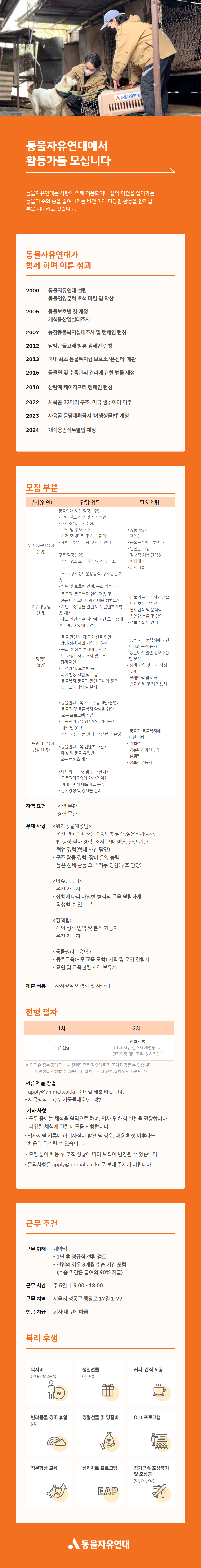 (사) 동물자유연대 전략사업국 각 팀별 활동가 모집
