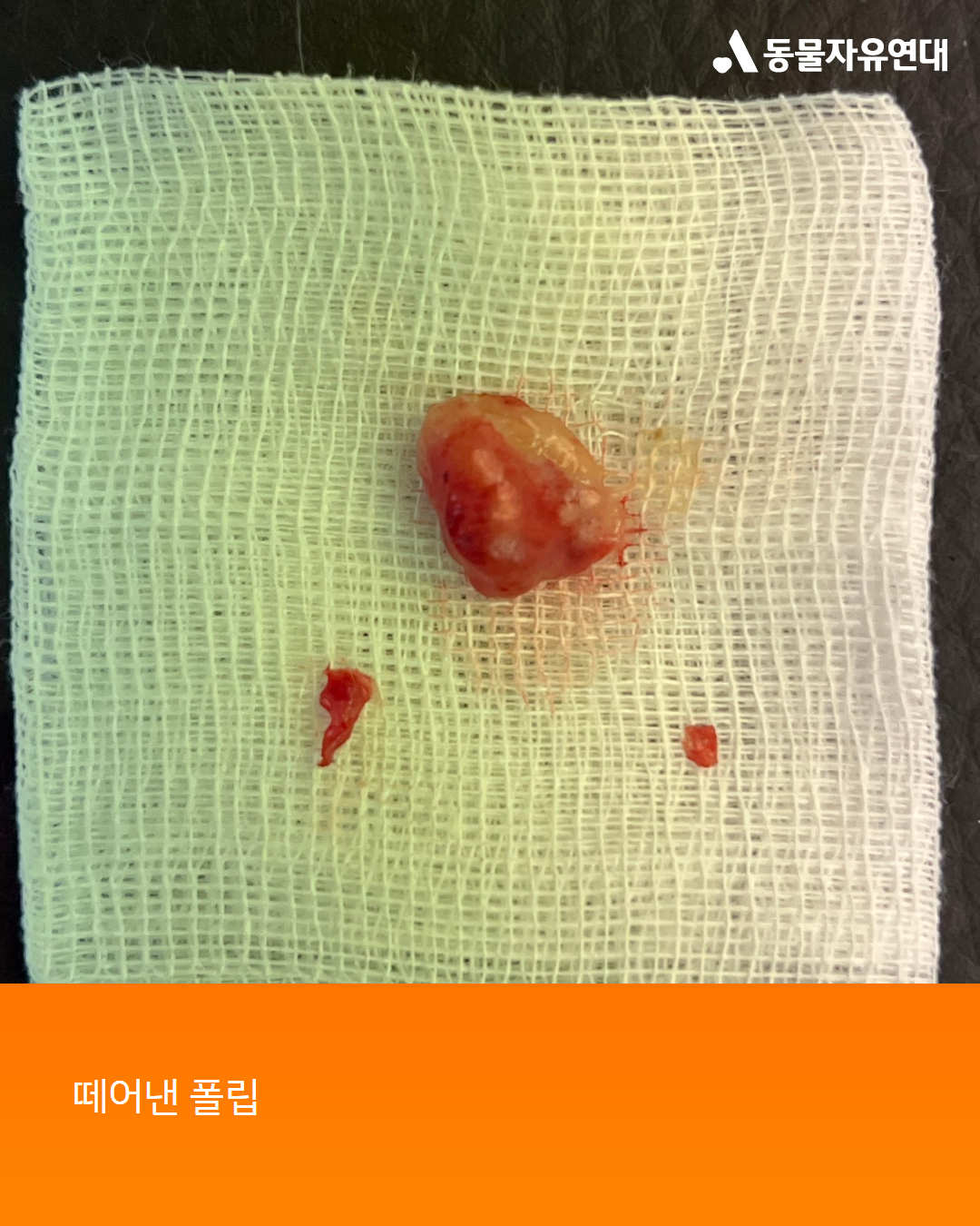 여러 병원을 찾아보다 한 병원을 알게 되었고 해당 병원에서는 다행히 폴립이 뇌나 안면부까지 진행되지 않아 우선 견인식 폴립 제거술을 통해 폴립을 제거하고, 이후 다시 재발하면 TECA을 고려하는 것이 가장 안전하다고 설명했습니다. 구조자는 그 방법이 광복이에게 부담을 줄이고 현실적으로 가장 적합한 수술이라고 판단하고 수술을 결정했습니다.