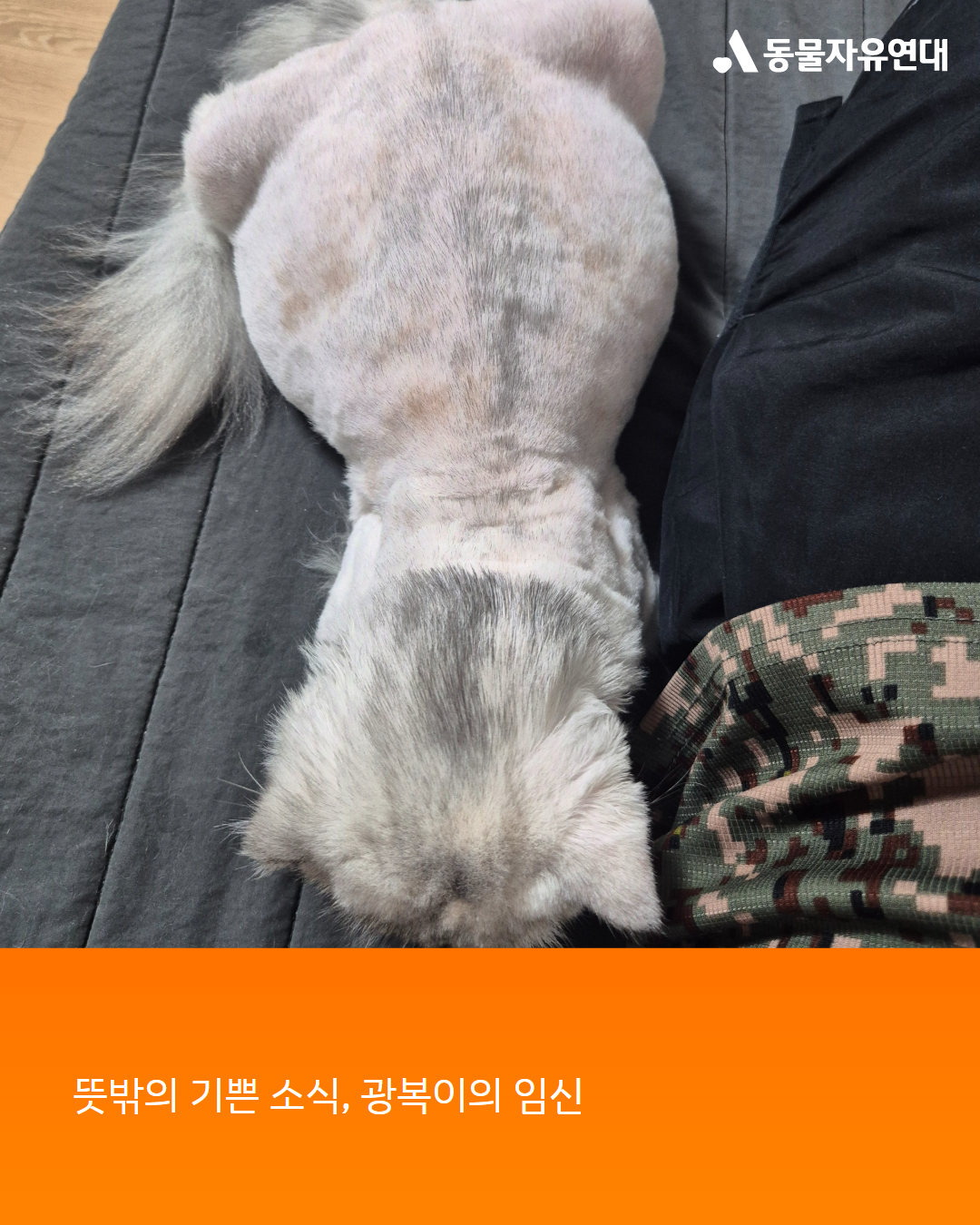 “광복이는 외이도 수술 후 건강을 완전히 회복하면 중성화 수술을 할 예정이었습니다. 그런데 광복이는 임신중이었습니다. 임신한 상태에서 구조된 거죠! 광복이를 구조하고 치료하면서 끝까지 책임지는 보호자의 자세가 무엇인지 다시 한번 깊이 느끼게 되었고, 앞으로도 광복이가 우리 가족으로 건강하게 잘 살 수 있도록 최선을 다할 것입니다.”