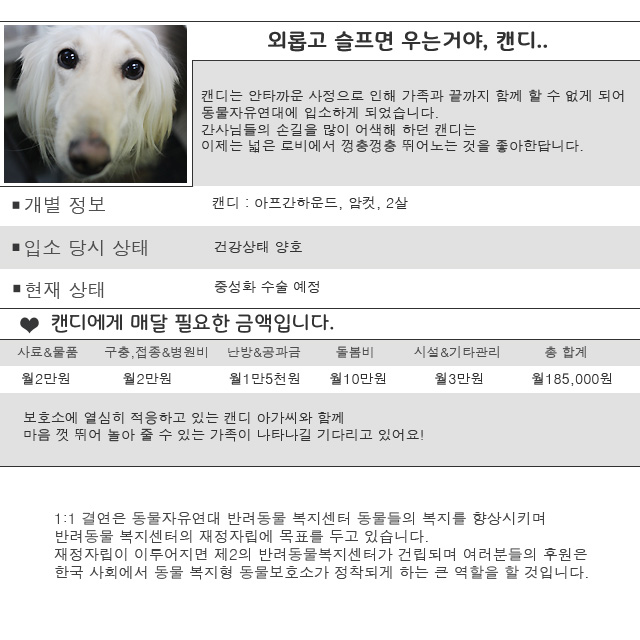 그동안 캔디에게 주신 많은 관심과 사랑 감사드립니다
