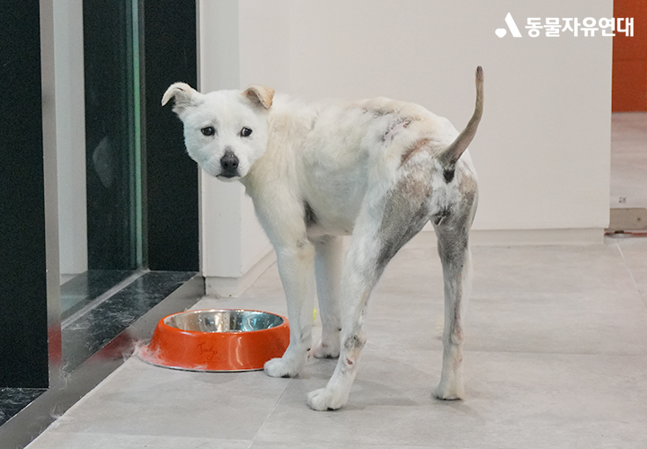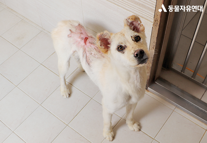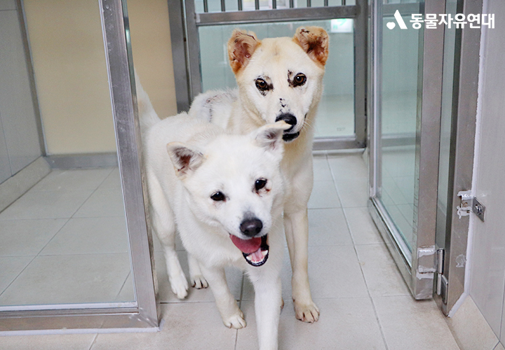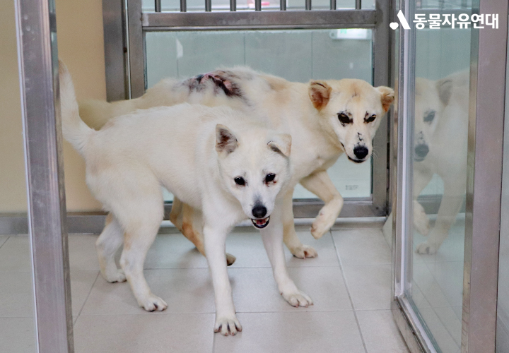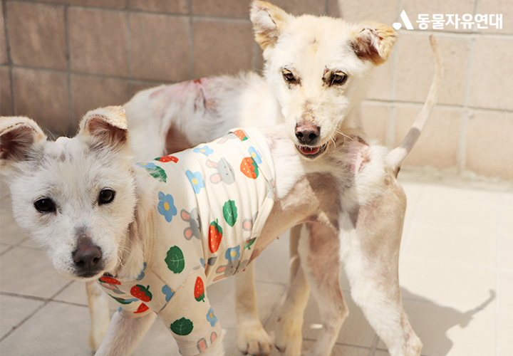 화상 부위가 넓었던 만큼, 치료는 이들에게 또 다른 고통이었습니다. 매일 반복되는 상처 소독과 치료는 쉽지 않았을 것입니다. 사람의 손길은 아직 낯설고 조심스러웠고, 특히 귀동이는 통증을 견디지 못해 울부짖으며 몸을 비틀기도 했습니다.