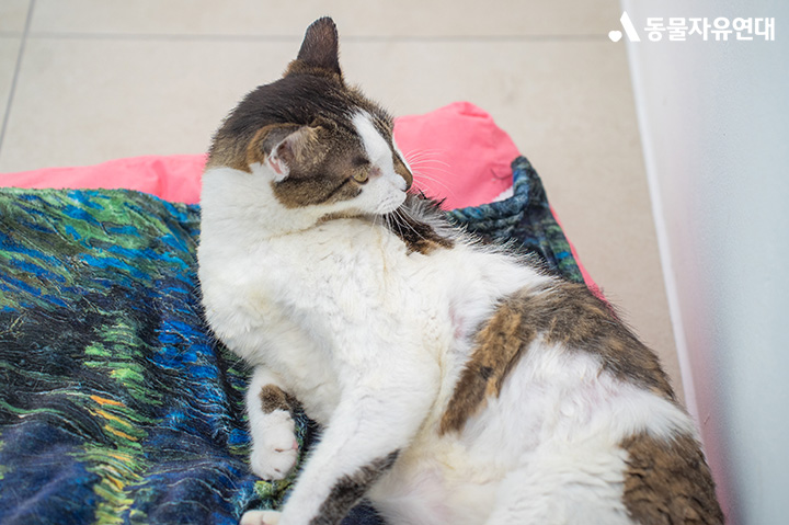 치료를 마친 모아는 온캣에 입주했습니다. 악몽 같은 시간을 보내고 새로 마주한 낯선 공간이 어색할 법도 하지만, 모아는 만나는 활동가마다 스스럼없이 눈인사를 건넸습니다.