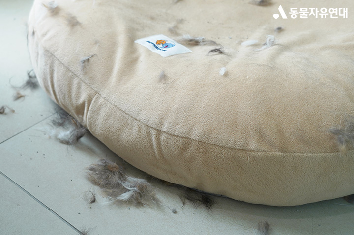 모아는 계속 자신의 그을린 털을 입으로 물어 뜯어냈고, 모아의 방에는 뽑아낸 털이 가득했습니다. 벌러덩 누워 애교를 부리고 있어도, 옆구리 털을 뽑아낸 흔적이 활동가들을 안타깝게 했습니다. 다행히 시간이 흘러 모아는 산불의 트라우마를 극복한 듯 안정을 되찾았습니다.