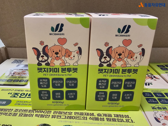 지난 10월 동물자유연대 보호동물들에게 관절영양제 128개를 후원해주셨습니다.