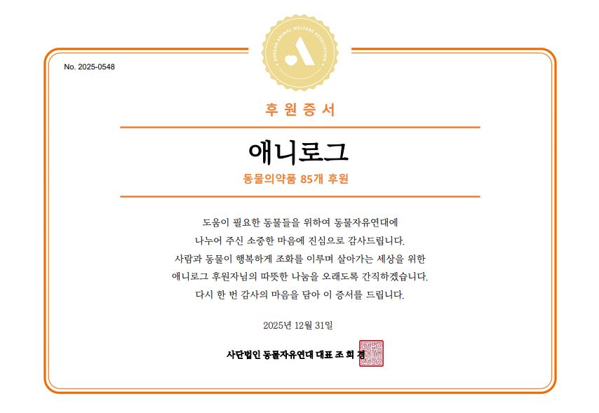 애니로그는 이전에도 동물들에게 필요한 의약품들을 여러 차례 후원해주셨던 착한 기업입니다.